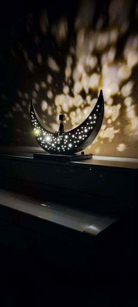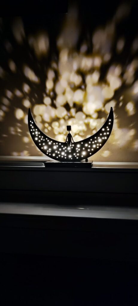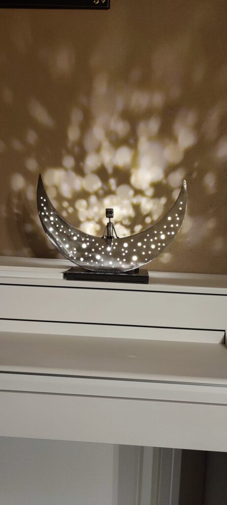 Objet lumineux et décoratif à la fois, cette lampe transforme l’espace en un cocon poétique, idéal pour une chambre, un coin lecture ou tout endroit où l’on souhaite inviter un peu de magie.