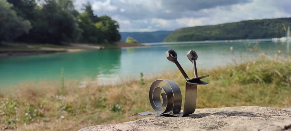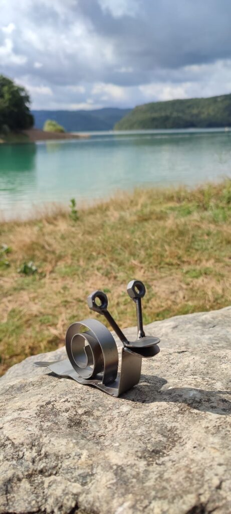 Je vous présente un escargot en acier au style à la fois sympathique et décoratif, entièrement façonné à la main.